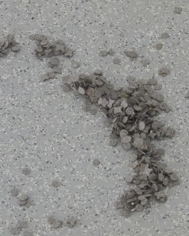 Die Arbeit Konfetti untersucht die Dynamik zwischen dem Erinnern und Vergessen und die synchron dazu stattfindende, sich fortlaufend wiederholende Transformation von Material.
